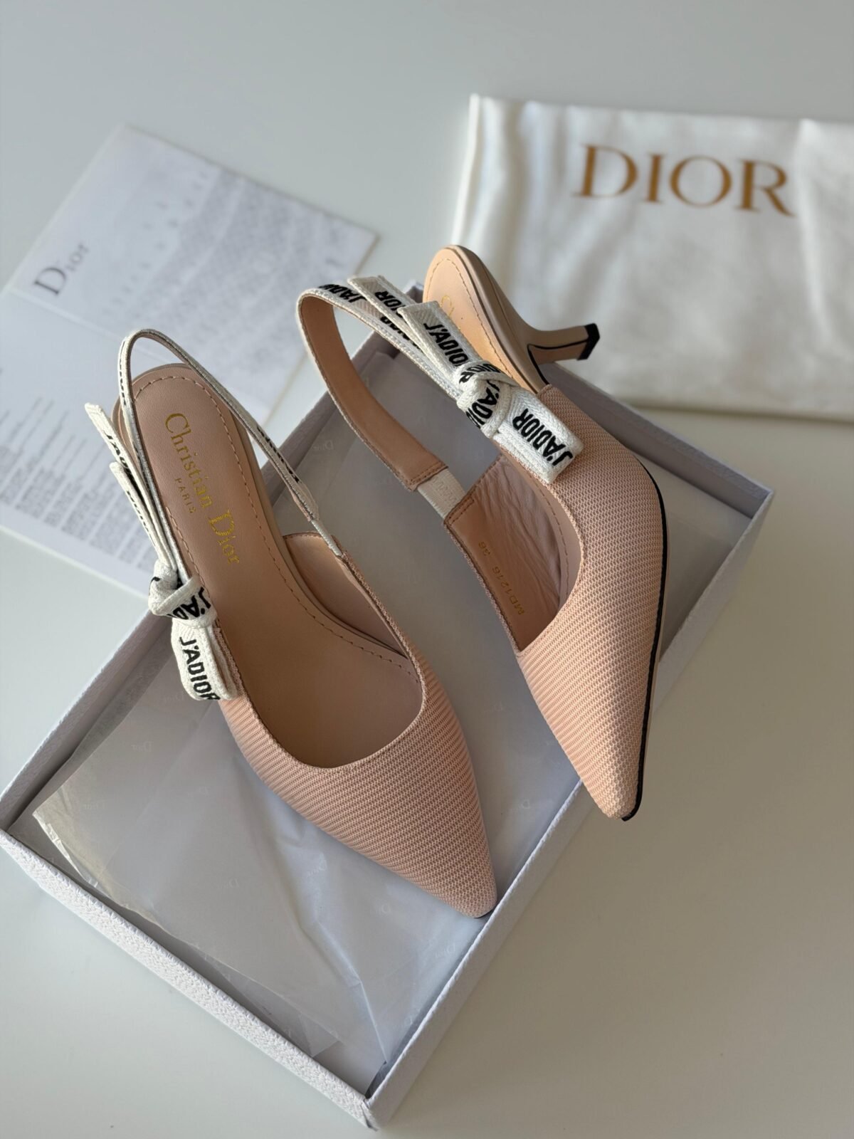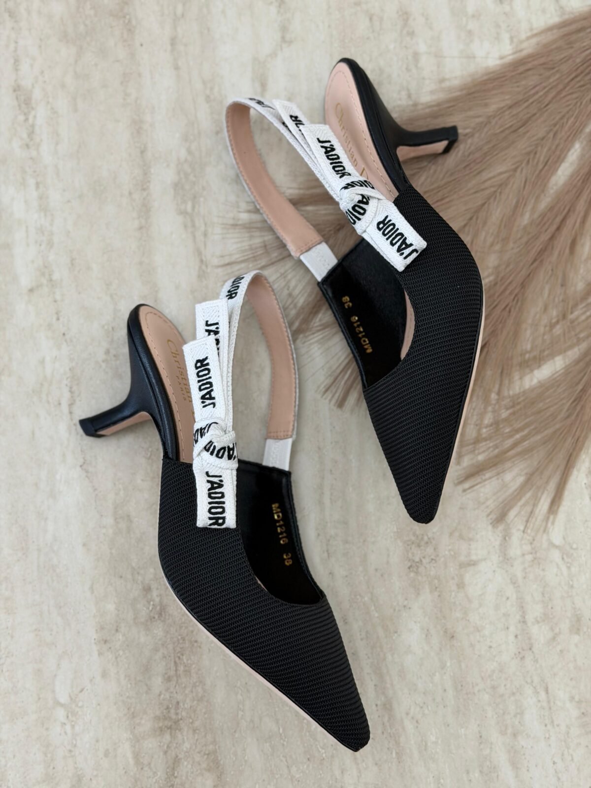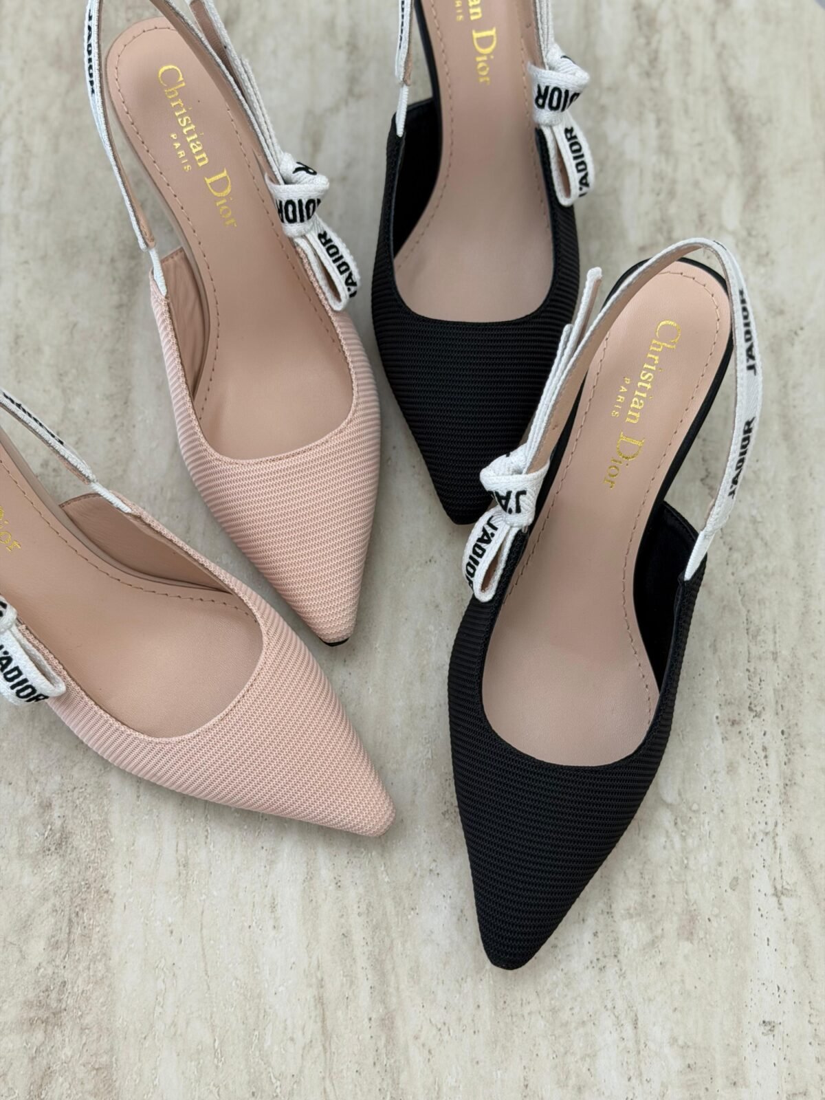حذاء ريبون سيلينغ باك بكعب أنيق ومقدمة مدببة، متوفر بلون Nude الناعم لإطلالة راقية وهادئة، وباللون Black الكلاسيكي لستايل قوي وفخم. لمسة أيقونية تليق بالسهرات واللوكات الرسمية.