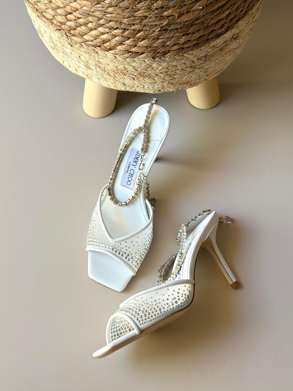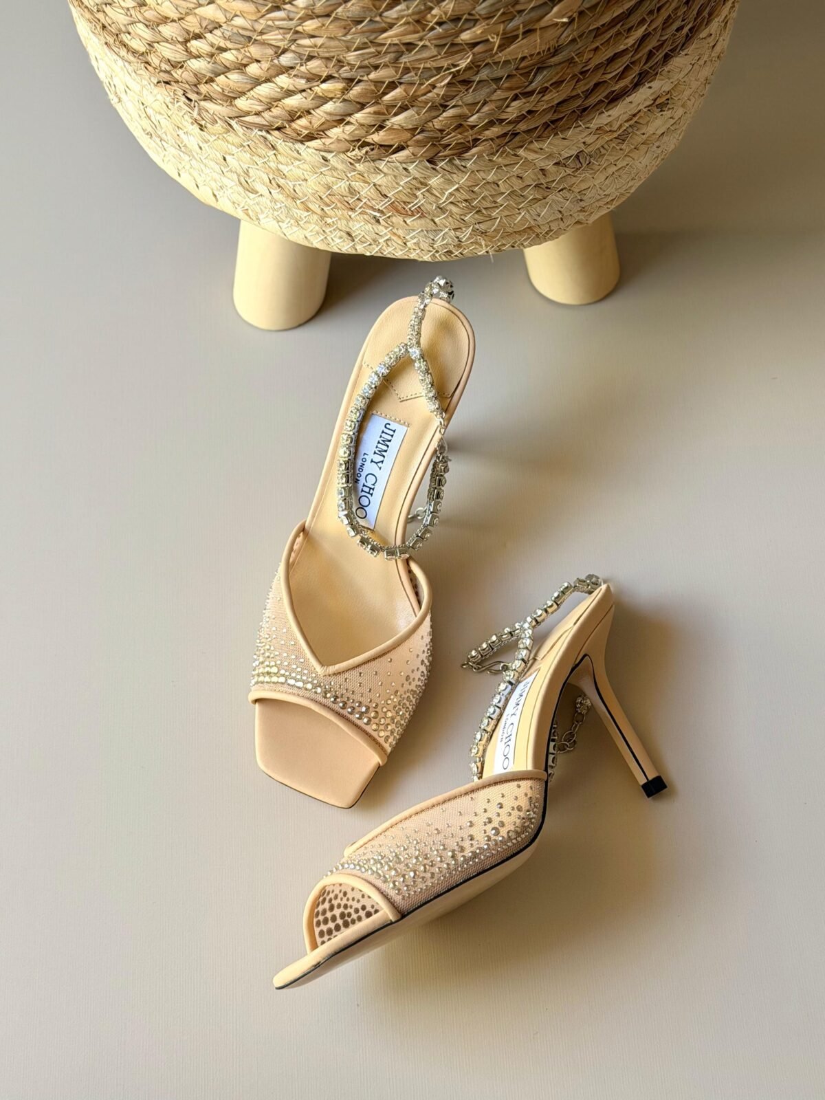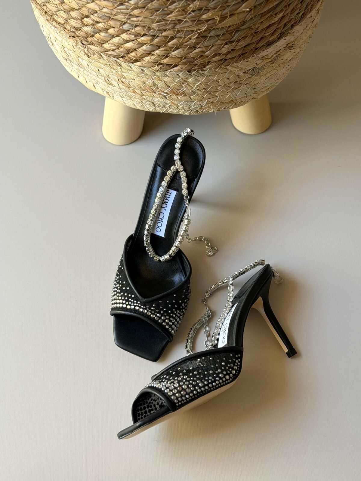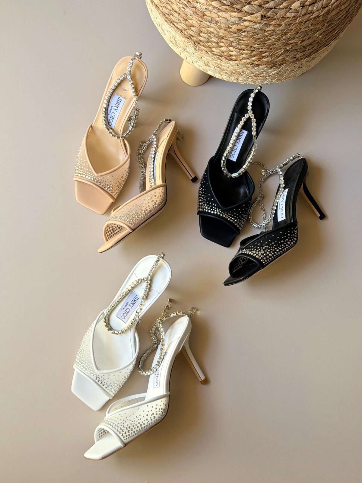 لمعة كريستال “هادئة وفخمة” تلف الكاحل وتخلي كل خطوة كأنها لقطة سهرة… اختيار مثالي للفساتين والعباية والمناسبات.