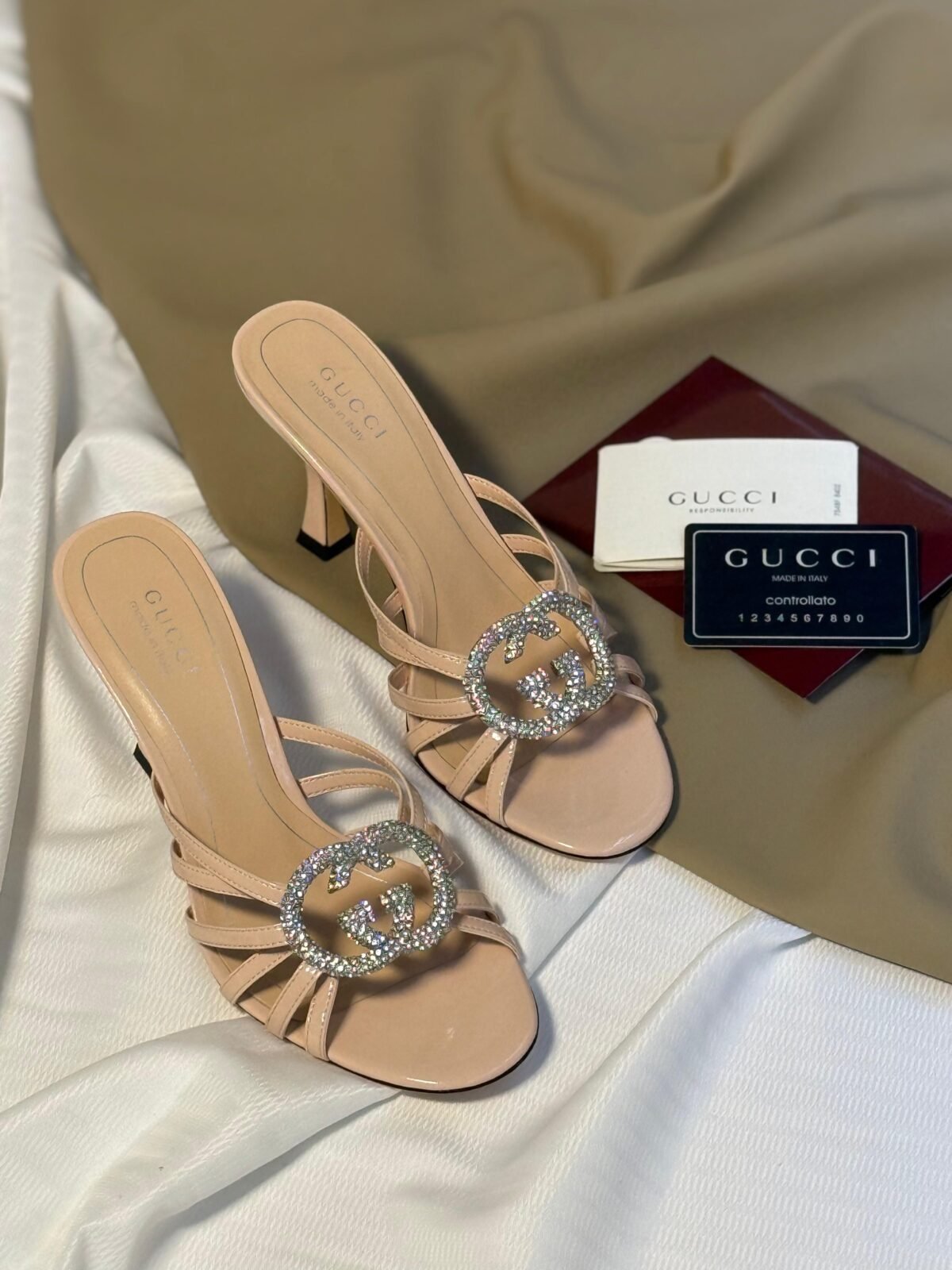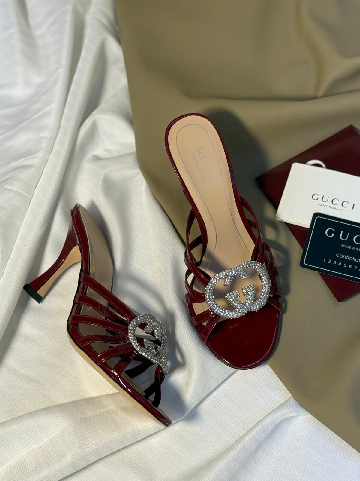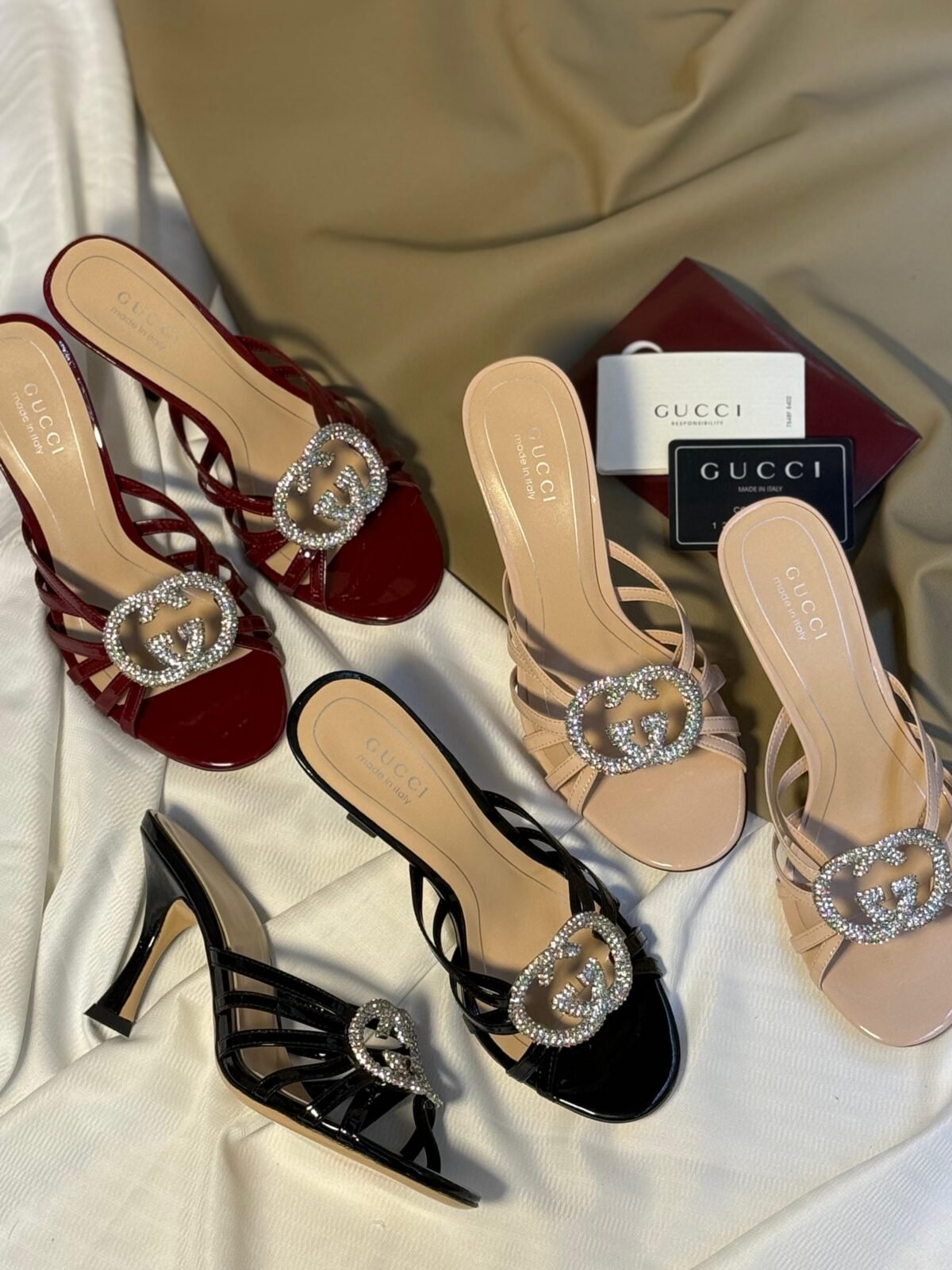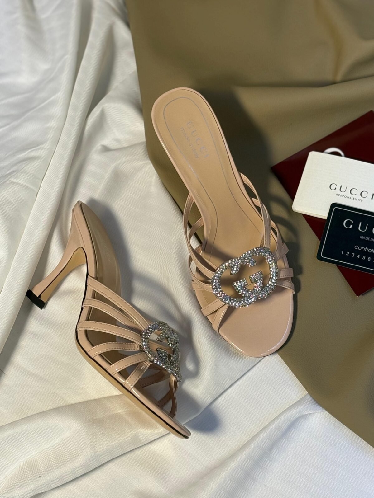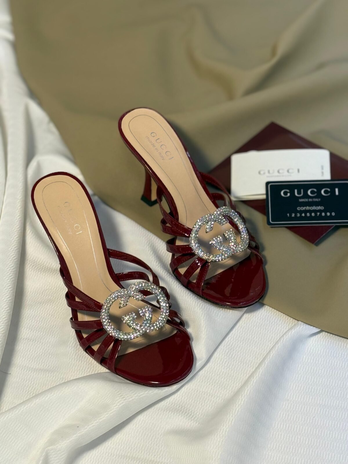 سلايد ساندل كريستال بكعب أنيق وأشرطة رفيعة تمنح القدم شكلاً ناعماً، مع شعار مرصّع بالكريستال يضيف لمعة فاخرة تلفت النظر. الأسود كلاسيكي للسهرات، النود راقٍ ويليق بكل الإطلالات، والأحمر الخمري جريء وفخم للمناسبات—قطعة واحدة ترفع أي لوك فوراً.