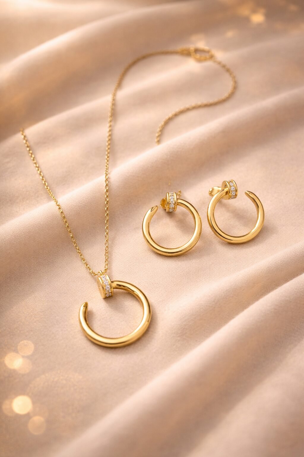 طقم مجوهرات بتصميم أنيق مستوحى من الذوق العالمي، مطلي بعناية ليمنحك لمسة فاخرة تناسب الإطلالات اليومية والمناسبات الخاصة. خيار مثالي لعشّاق الأناقة والتفاصيل الراقية.