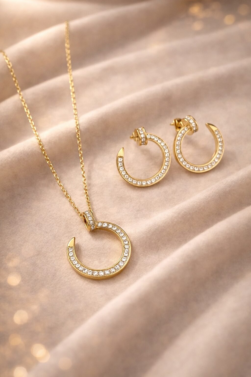 طقم مجوهرات بتصميم أنيق مستوحى من الذوق العالمي، مطلي بعناية ليمنحك لمسة فاخرة تناسب الإطلالات اليومية والمناسبات الخاصة. خيار مثالي لعشّاق الأناقة والتفاصيل الراقية.