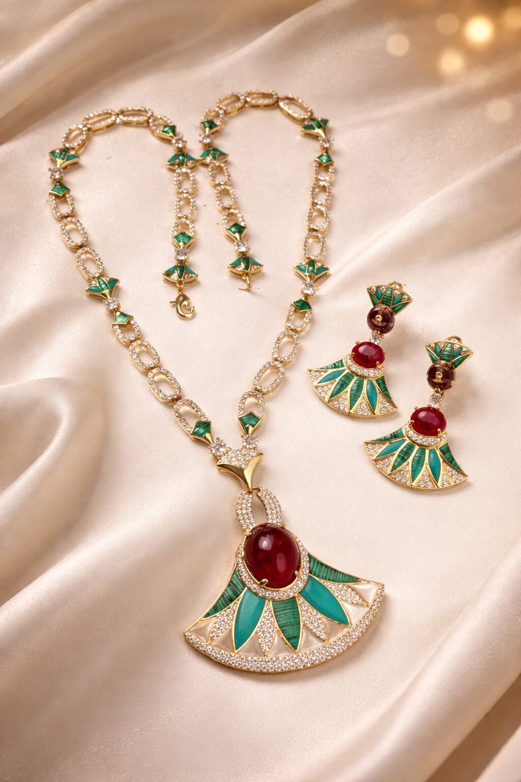 طقم مجوهرات بتصميم أنيق مستوحى من الذوق العالمي، مطلي بعناية ليمنحك لمسة فاخرة تناسب الإطلالات اليومية والمناسبات الخاصة. خيار مثالي لعشّاق الأناقة والتفاصيل الراقية.