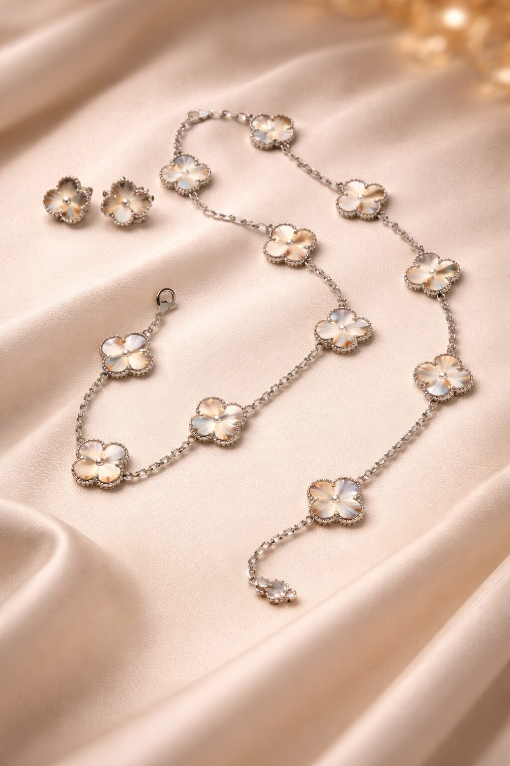 طقم مجوهرات بتصميم أنيق مستوحى من الذوق العالمي، مطلي بعناية ليمنحك لمسة فاخرة تناسب الإطلالات اليومية والمناسبات الخاصة. خيار مثالي لعشّاق الأناقة والتفاصيل الراقية.