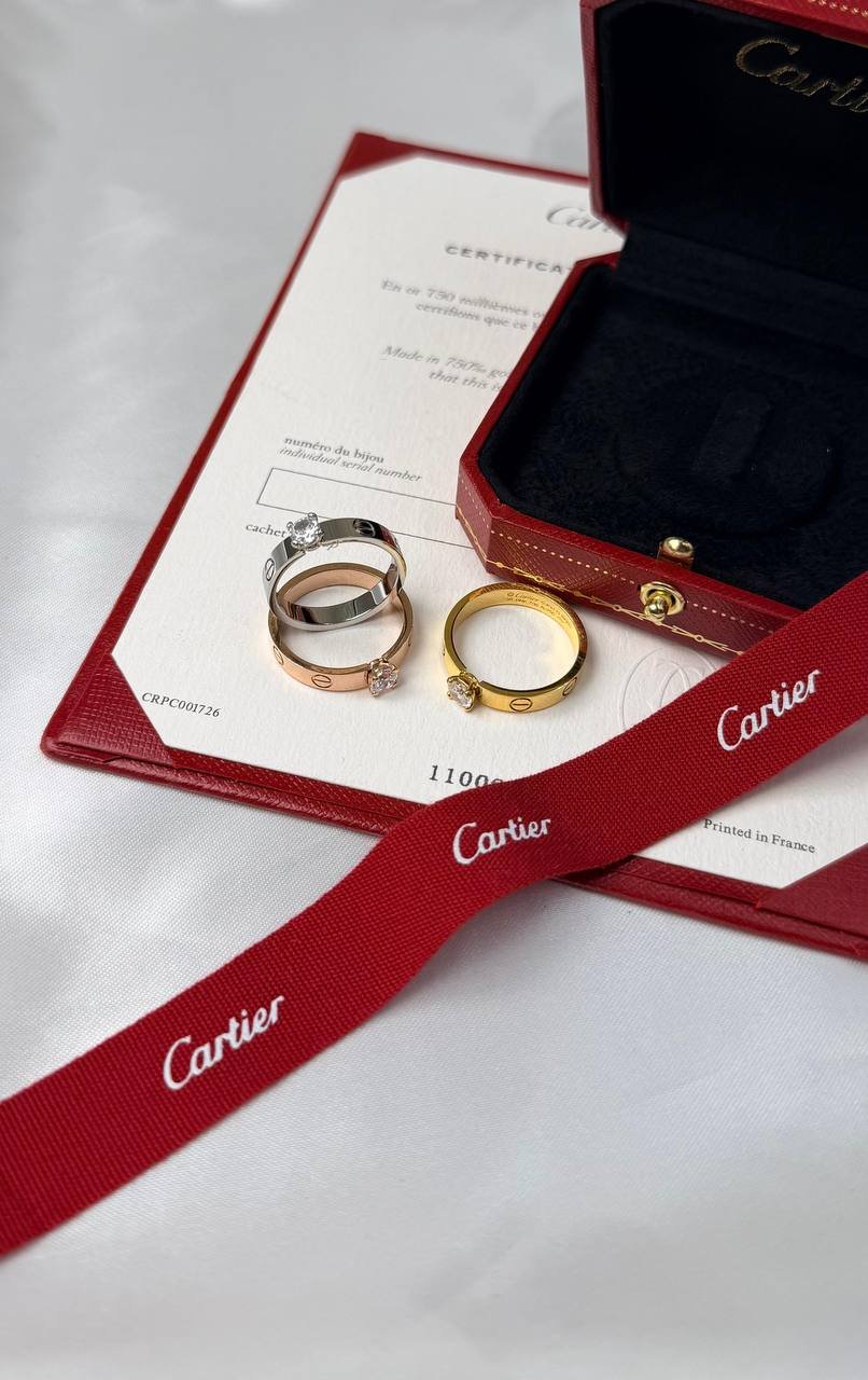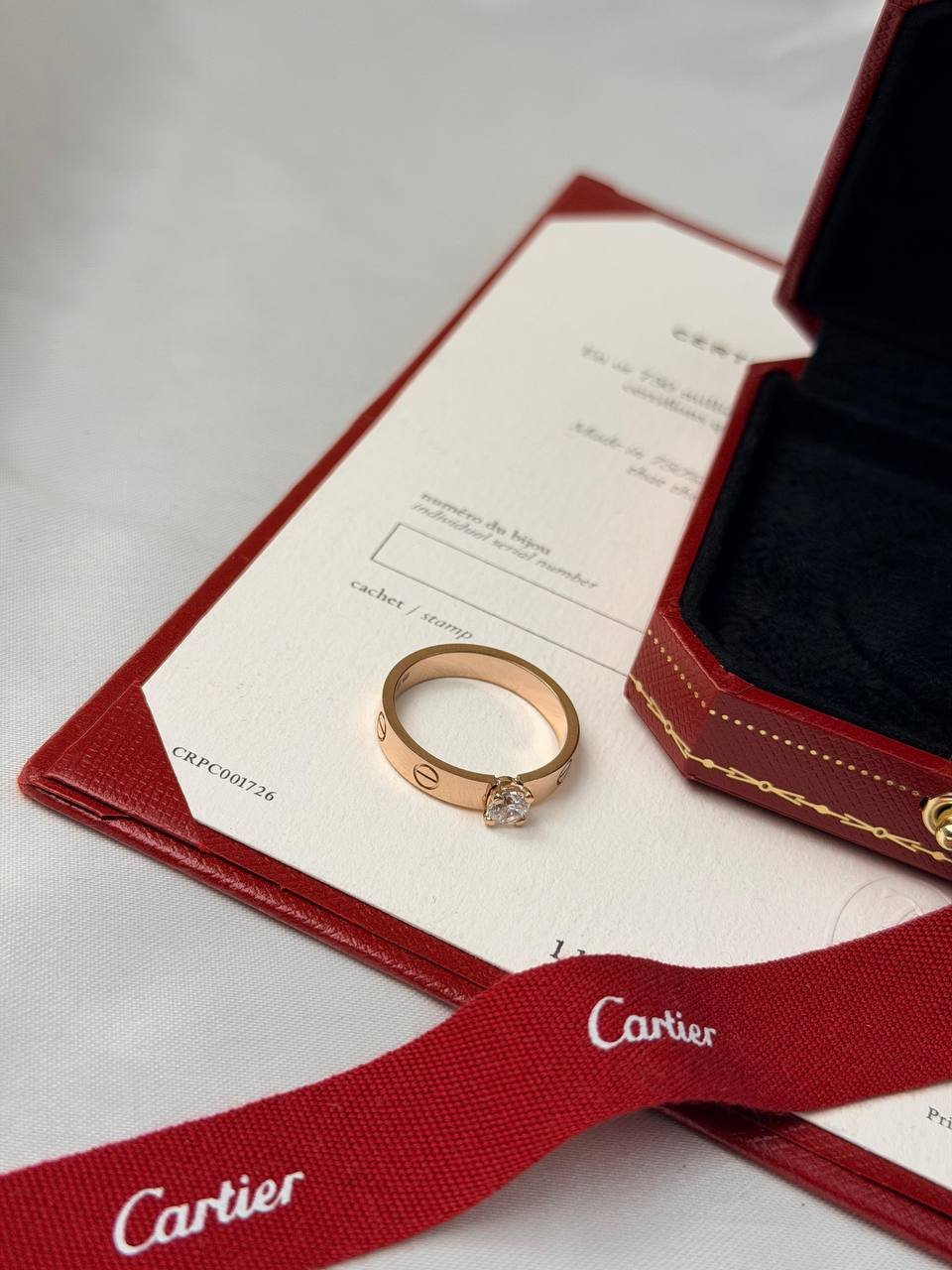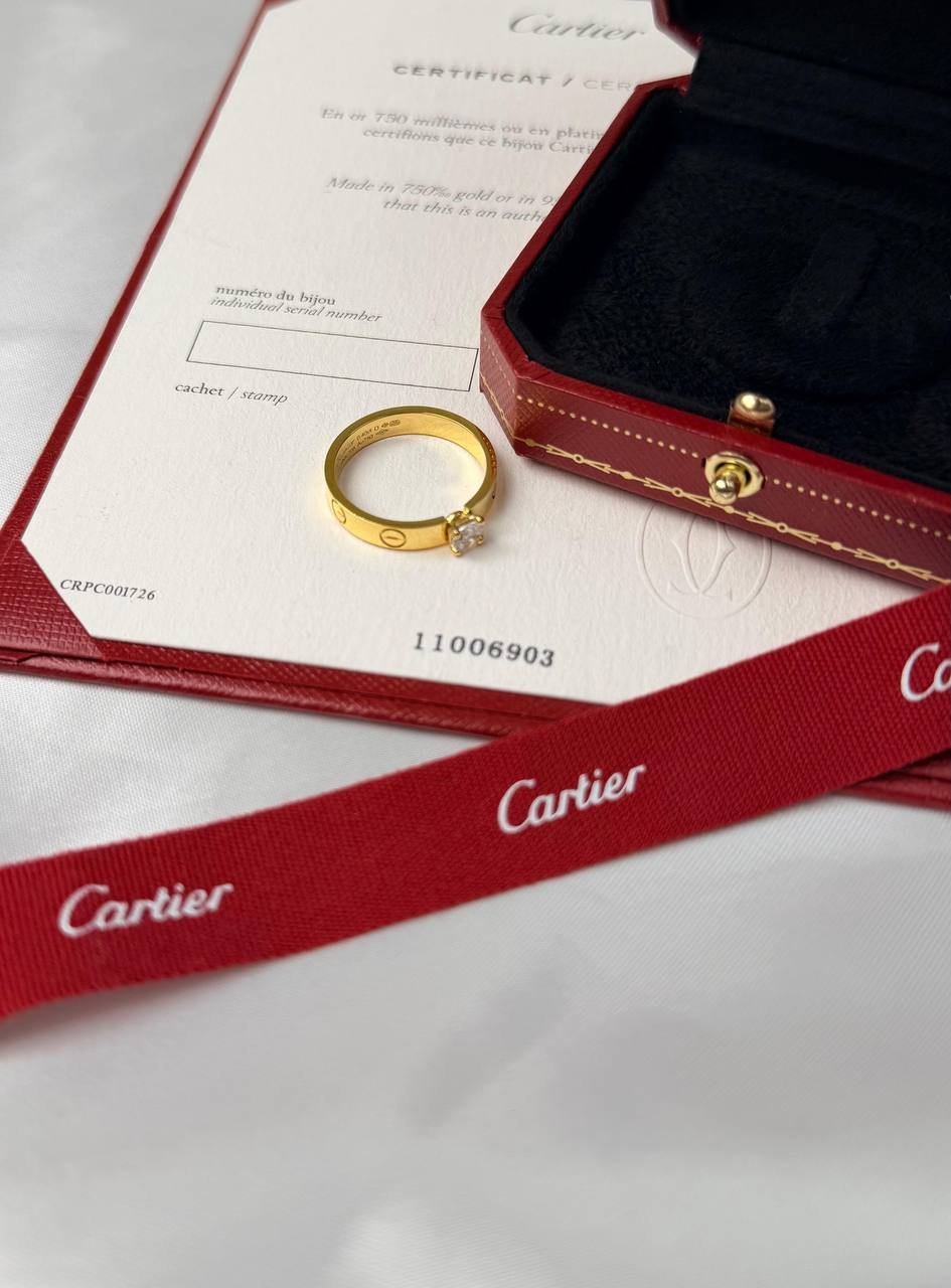 خاتم كارتير LOVA بتصميم أيقوني من الذهب الأصفر مع نقش مسامير LOVA ولمسة تعليقة ألماس متحركة تضيف بريقًا ناعمًا. قطعة فاخرة مناسبة للّبس اليومي وتنسيق التكديس.