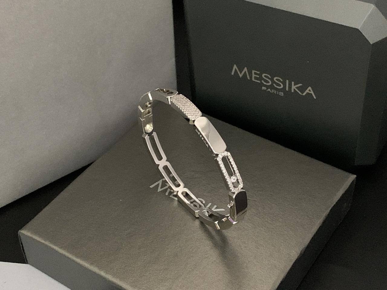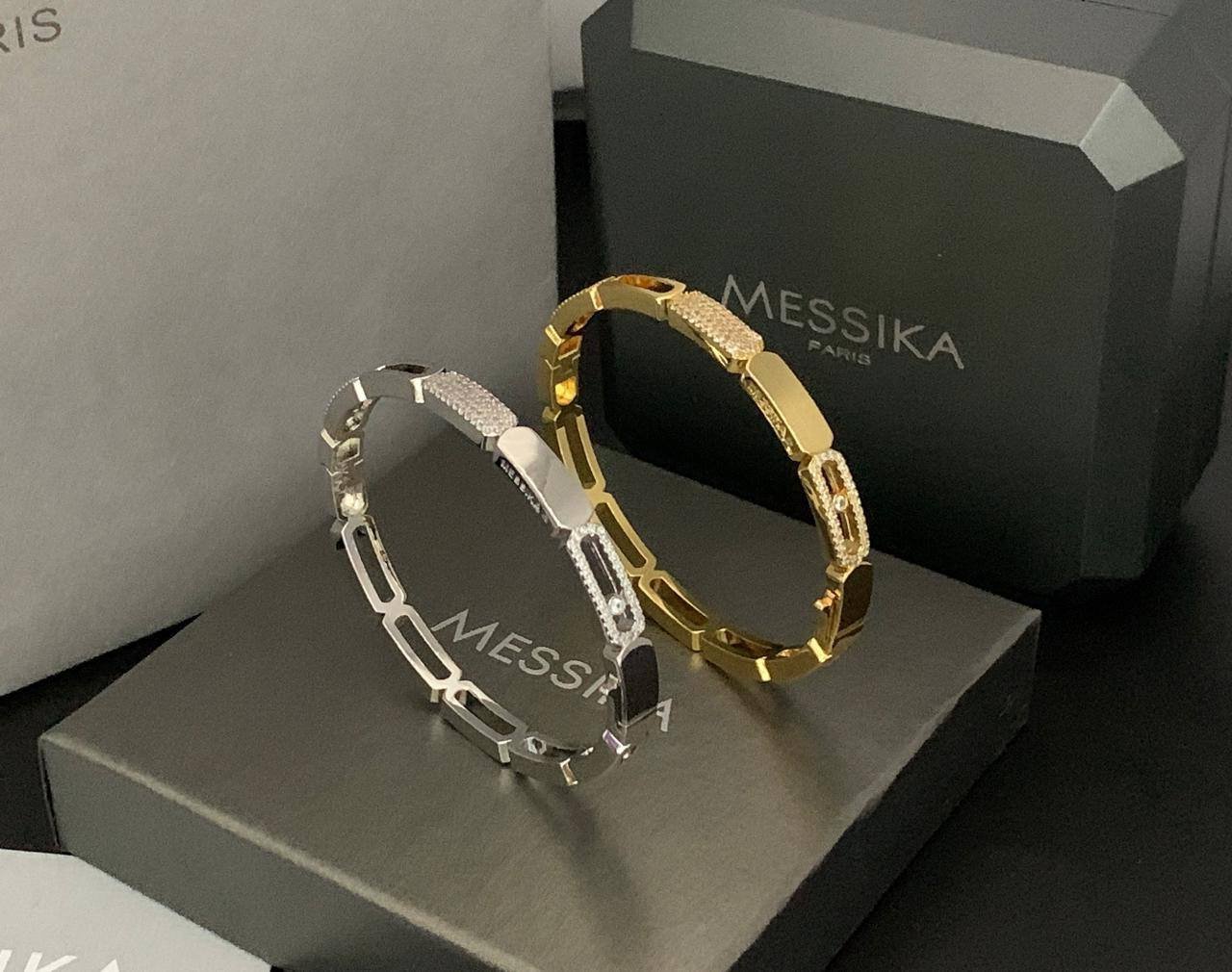 اسوارة بتصميم Move Link بسلسلة هندسية أنيقة ولمسات بافيّه لامعة مع فص متحرك مميز. قطعة فاخرة وخفيفة تناسب اللبس اليومي والسهرة وتضيف بريقًا راقيًا لأي إطلالة.