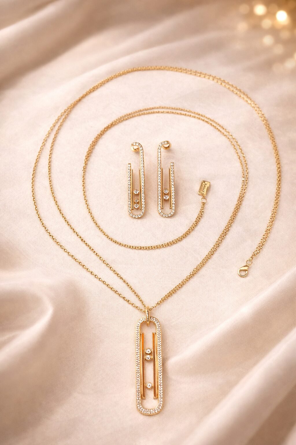 طقم مجوهرات بتصميم أنيق مستوحى من الذوق العالمي، مطلي بعناية ليمنحك لمسة فاخرة تناسب الإطلالات اليومية والمناسبات الخاصة. خيار مثالي لعشّاق الأناقة والتفاصيل الراقية.