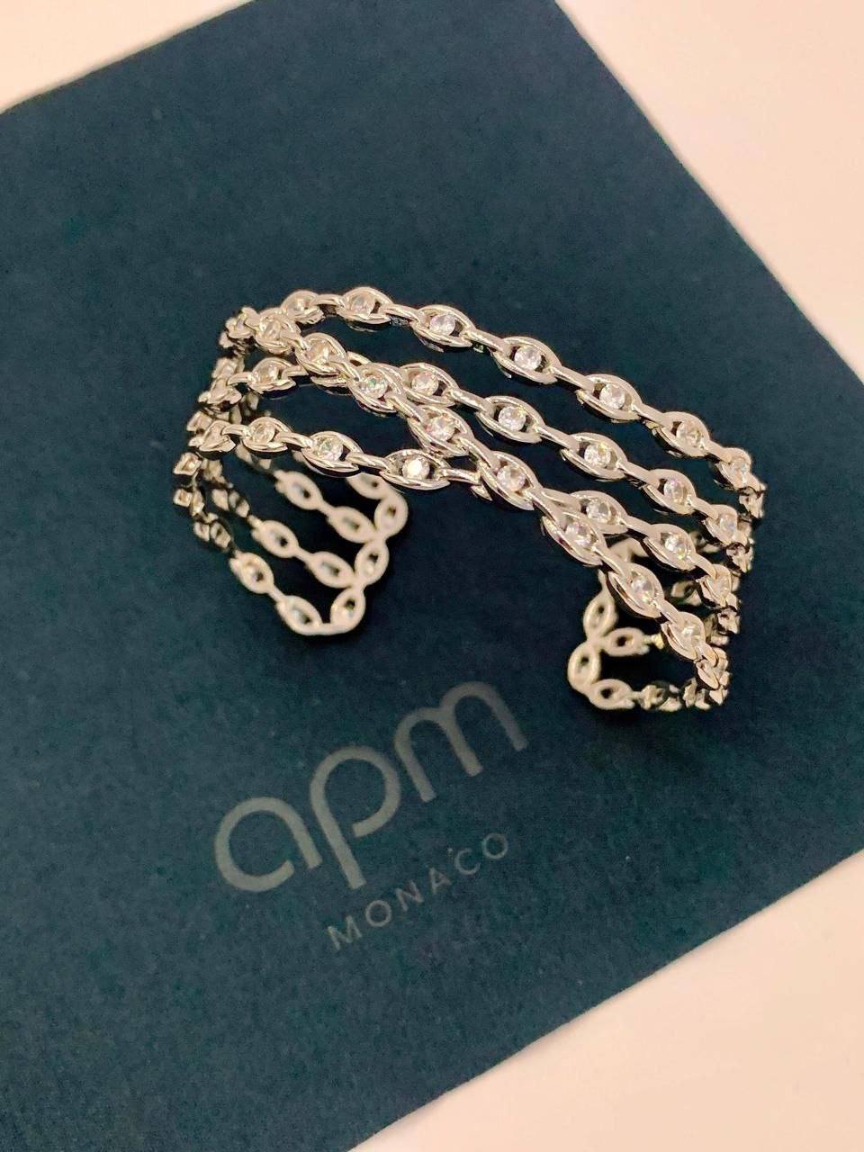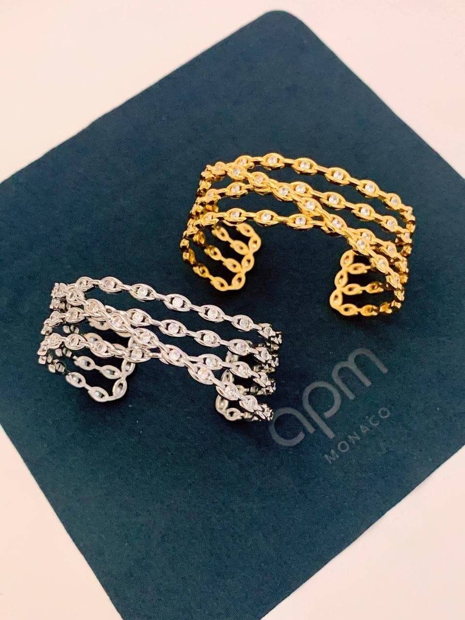 سوار عصري وحديث بتصميم كف متعدد الصفوف وروابط أنيقة مرصعة بكريستالات لامعة. قطعة فاخرة تناسب الإطلالة اليومية والسهرات وتضيف لمسة راقية لأي تنسيق.