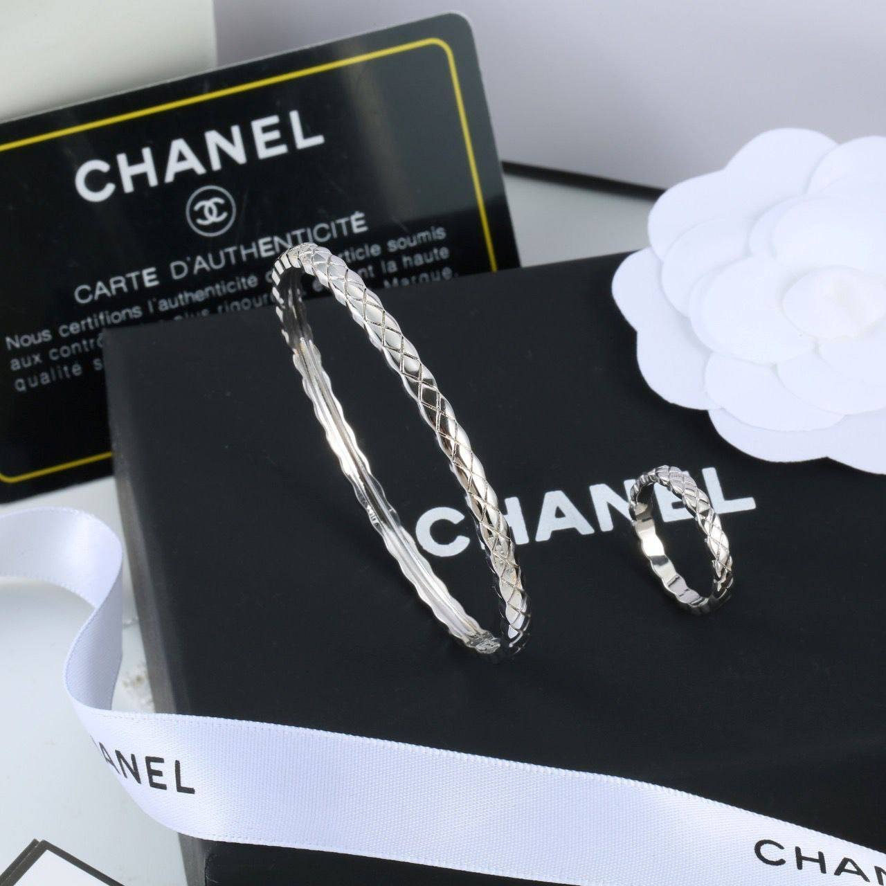 طقم سوار وخاتم بنقشة خياطة متقاطعة فاخرة ولمعة ذهبية أنيقة، مناسب للإطلالات الرسمية واليومية.