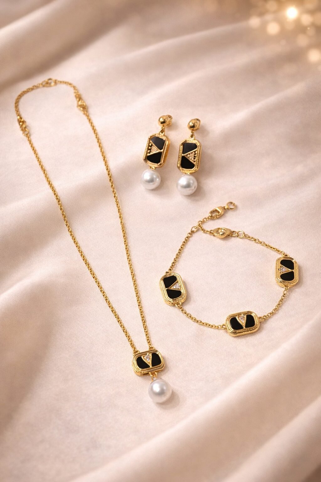 طقم مجوهرات بتصميم أنيق مستوحى من الذوق العالمي، مطلي بعناية ليمنحك لمسة فاخرة تناسب الإطلالات اليومية والمناسبات الخاصة. خيار مثالي لعشّاق الأناقة والتفاصيل الراقية.