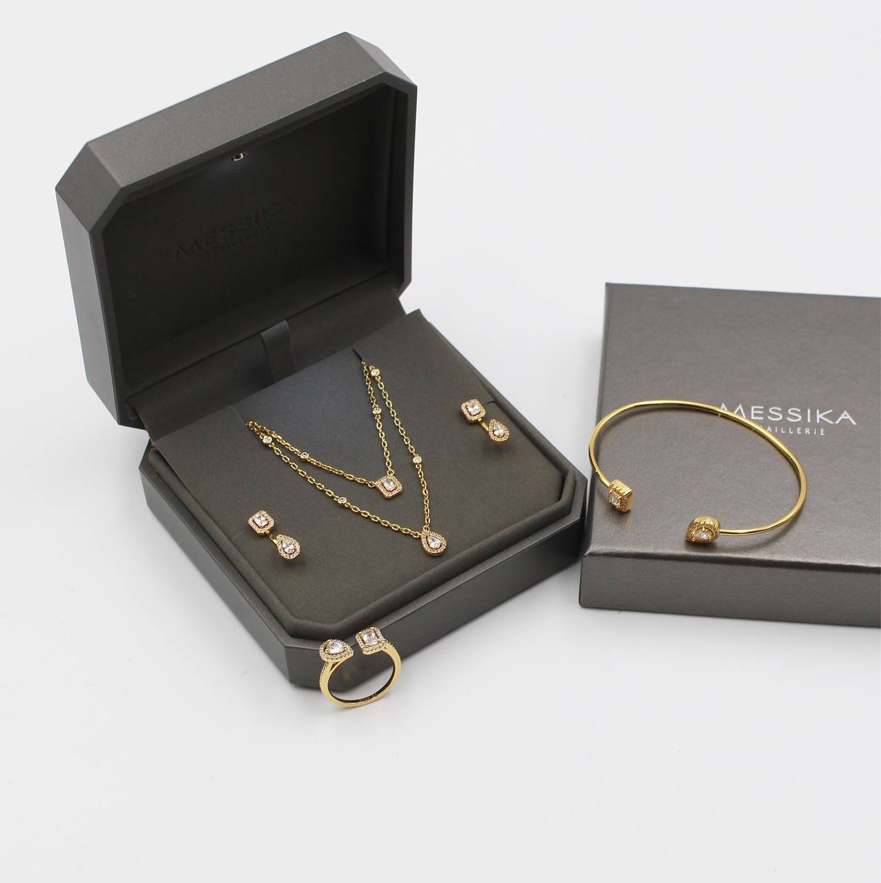 طقم مجوهرات بتصميم أنيق مستوحى من الذوق العالمي، مطلي بعناية ليمنحك لمسة فاخرة تناسب الإطلالات اليومية والمناسبات الخاصة. خيار مثالي لعشّاق الأناقة والتفاصيل الراقية.
